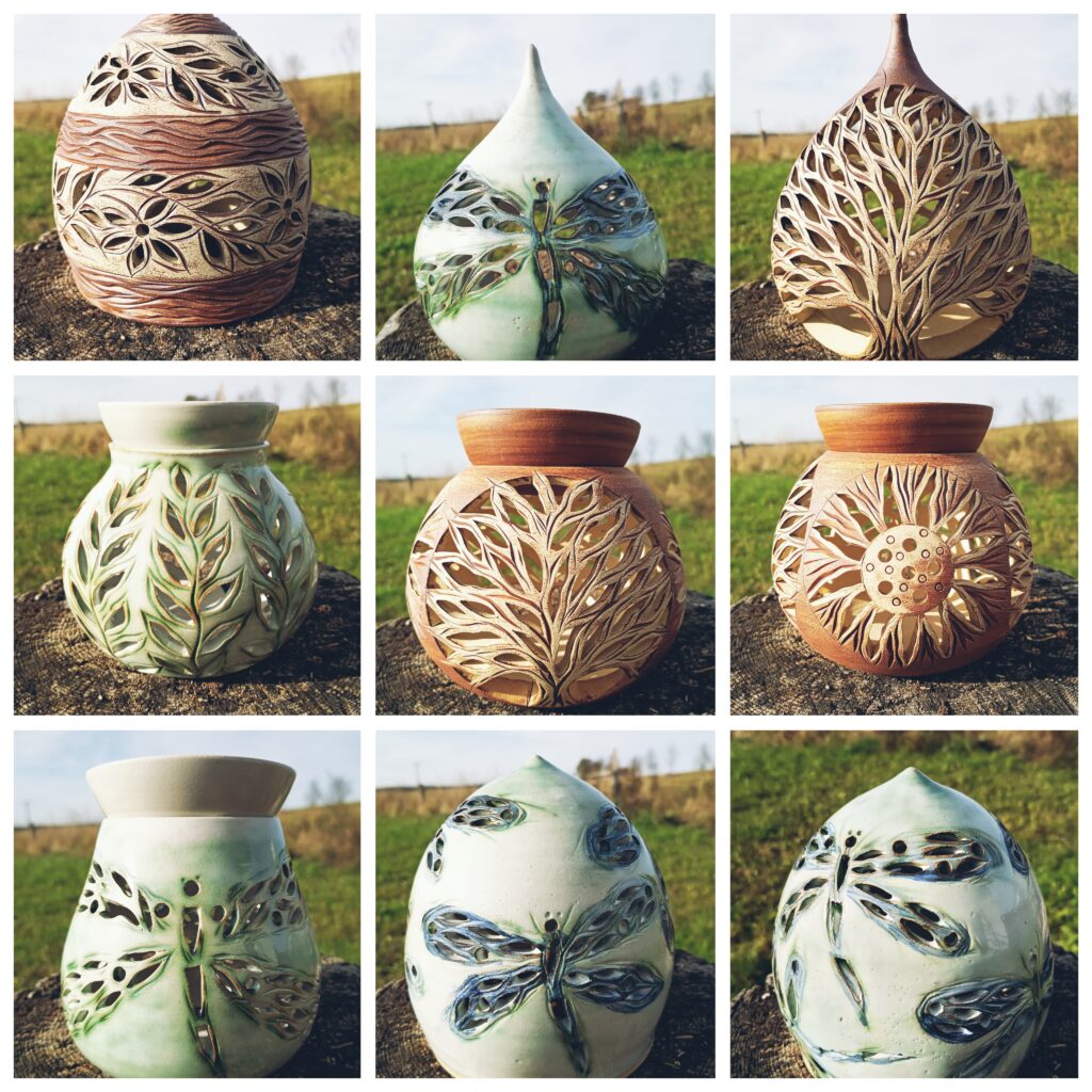 Vytvářím keramiku z kameniny, pálenou nad 1200°C, oheň v peci dělá ve výsledku zajímavé efekty a právě v ohni spočívá ten tradiční výpal, vyrábím užitkovou keramiku od hrníčků, čajových konvic, misek, talířů až po zapékací mísy, nabízím také modelováné aromalampy, svícny, šperky a různé zajímavůstky.