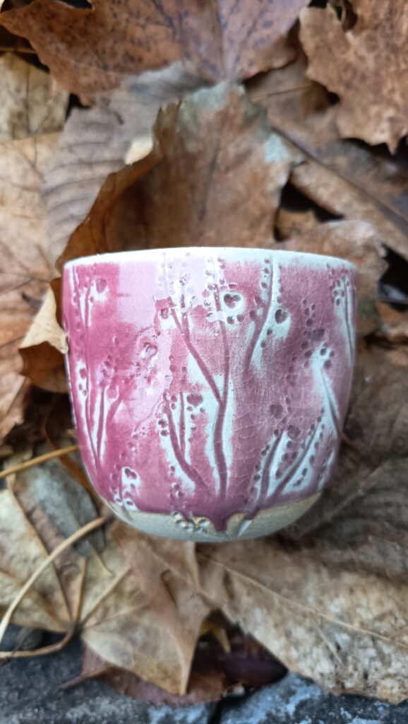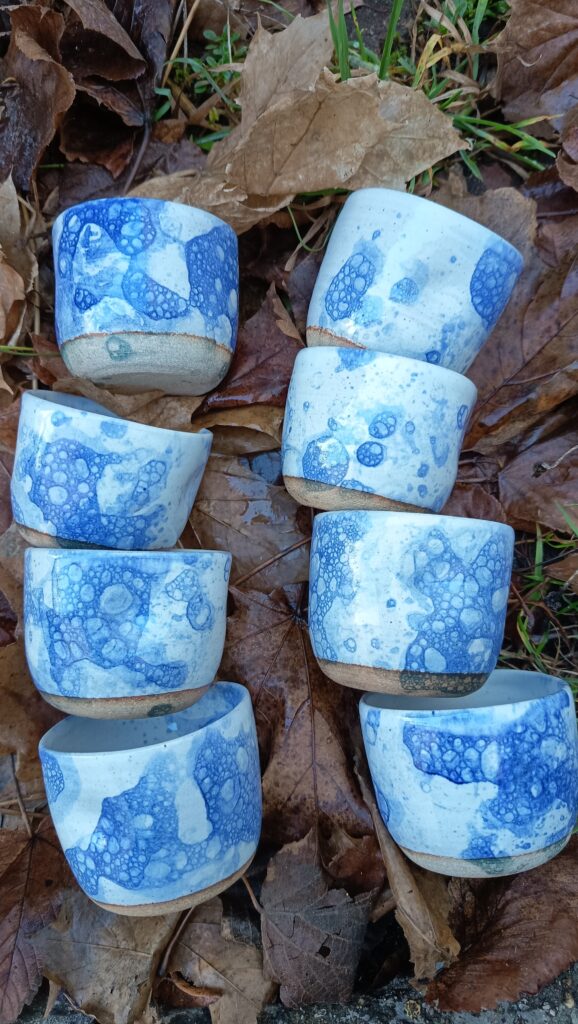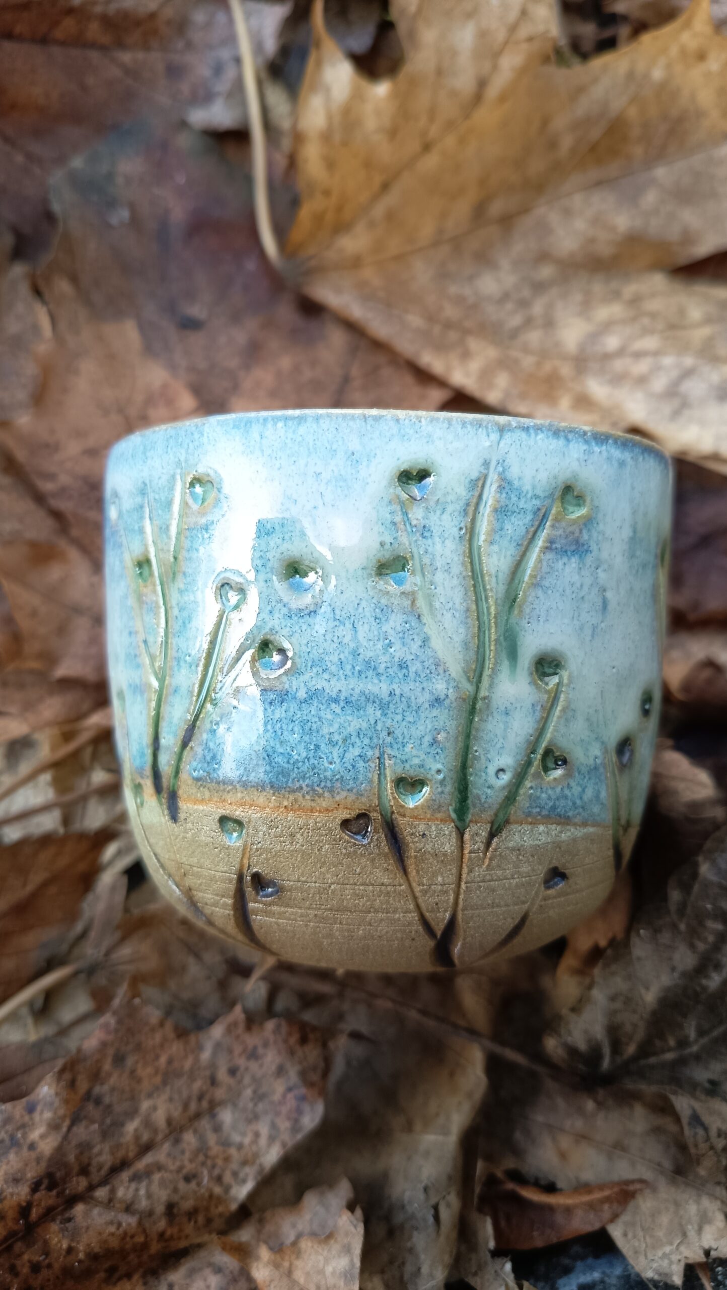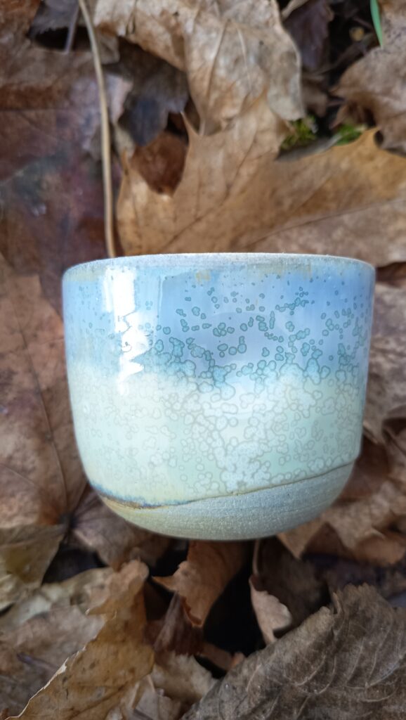 Promáčknutý šálek s krystalickou glazurou 250 ml, 370 Kč